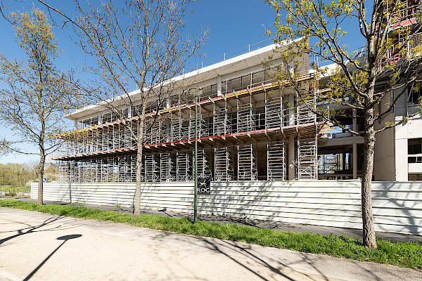 Les travaux sont réalisés par les entreprises ROCHEFOLLE Constructions (ROC), Groupe OPTIM, HELIOENERGIE avec l’entreprise co-traitante DrillHeat pour les travaux de géothermie.