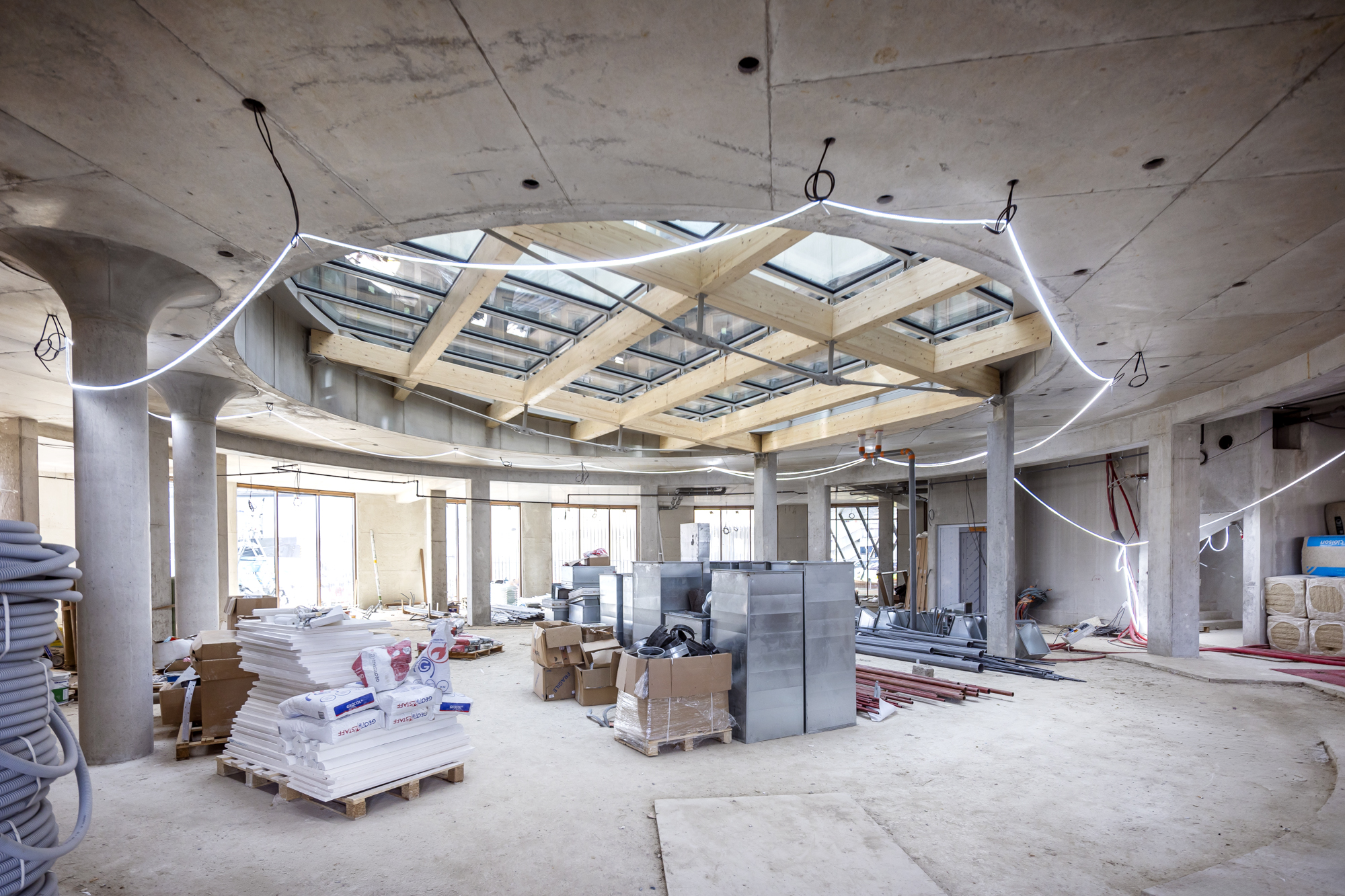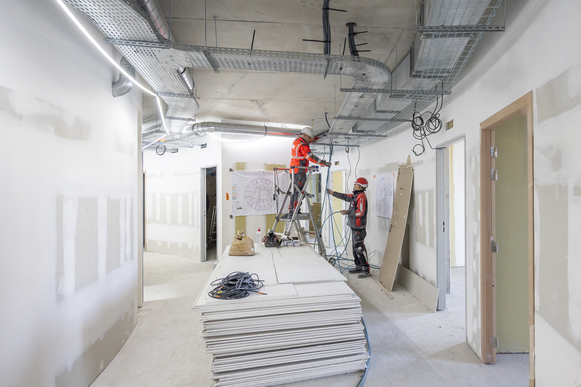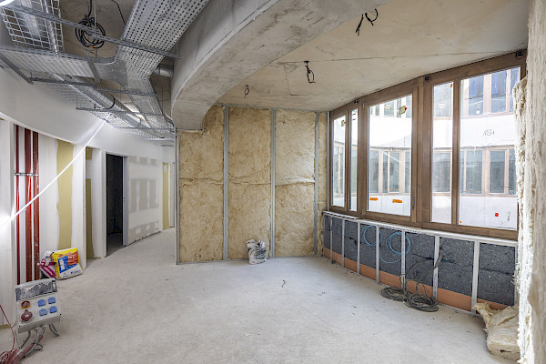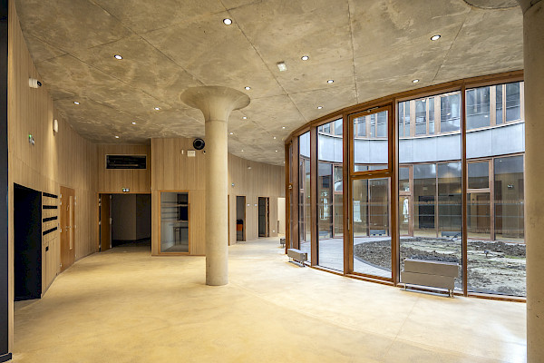 Enfin, pendant la phase travaux de la phase 1, un partenariat avec l’Institut Galilée (intégré à l’USPN) a été mis en place dans le cadre de la formation de 3e année de l’école d’ingénieurs SUP Galilée. Un projet de fin d’année a été développé par des étudiants de la spécialité énergétique sur ce chantier MathSTIC. Une visite de chantier avec les étudiants et formateurs a été organisée à cette occasion et animée par la maîtrise d’œuvre et l’accompagnateur BDF. L’opération a de nouveau confirmé, lors de la commission phase réalisation qui a eu lieu en décembre 2024, le niveau argent de la démarche BDF, précédemment obtenu en phase conception, gage de la qualité du projet.